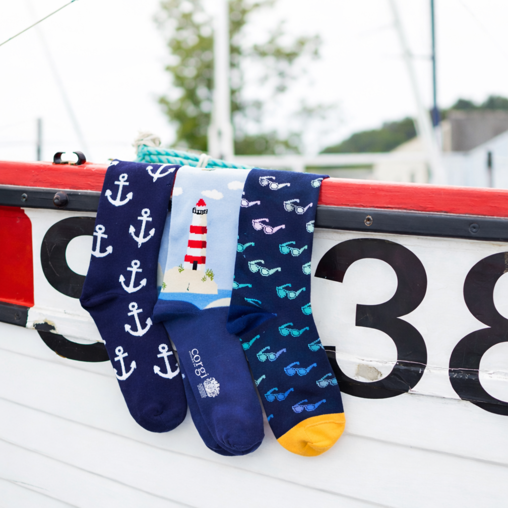 Elevate your everyday essentials with these refined Men's Anchor Cotton Socks. Woven from a premium cotton blend, they deliver exceptional breathability and comfort throughout the day. The understated nautical motif brings understated character to your wardrobe, seamlessly complementing smart-casual ensembles without demanding attention. Meticulously crafted at our Welsh workshop, these socks represent the perfect marriage of distinctive design and superior craftsmanship—a hallmark of Corgi's commitment to quality.