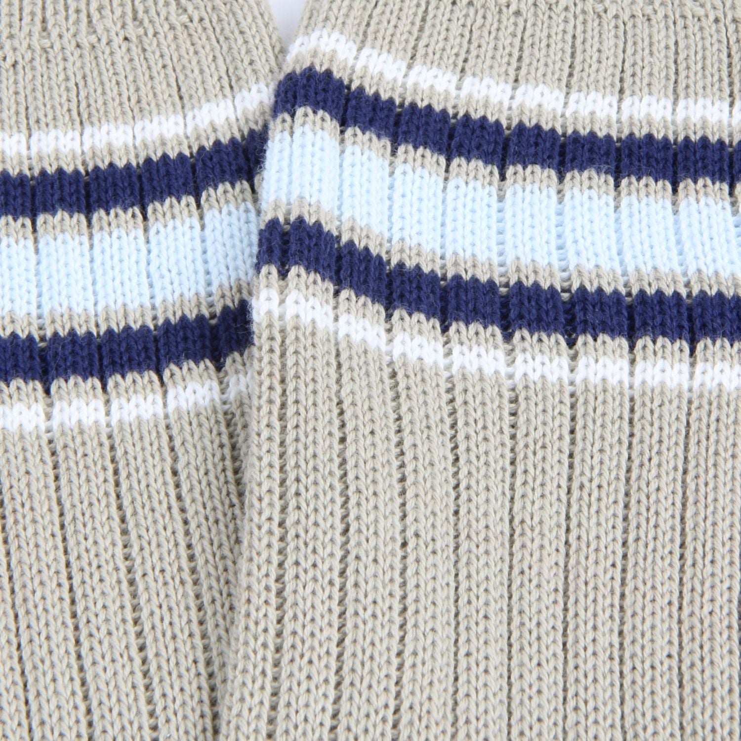 Crafted from premium pure cotton, these men's boot socks deliver substantial comfort with a refined aesthetic. The sturdy ribbed construction ensures a secure, supportive fit, whilst distinctive sport stripes in beige and white beneath the cuff evoke classic athletic heritage. Expertly knitted in Wales using time-honoured techniques, they represent an investment in lasting quality and understated elegance. Perfect for those who appreciate authentic craftsmanship and enduring style.