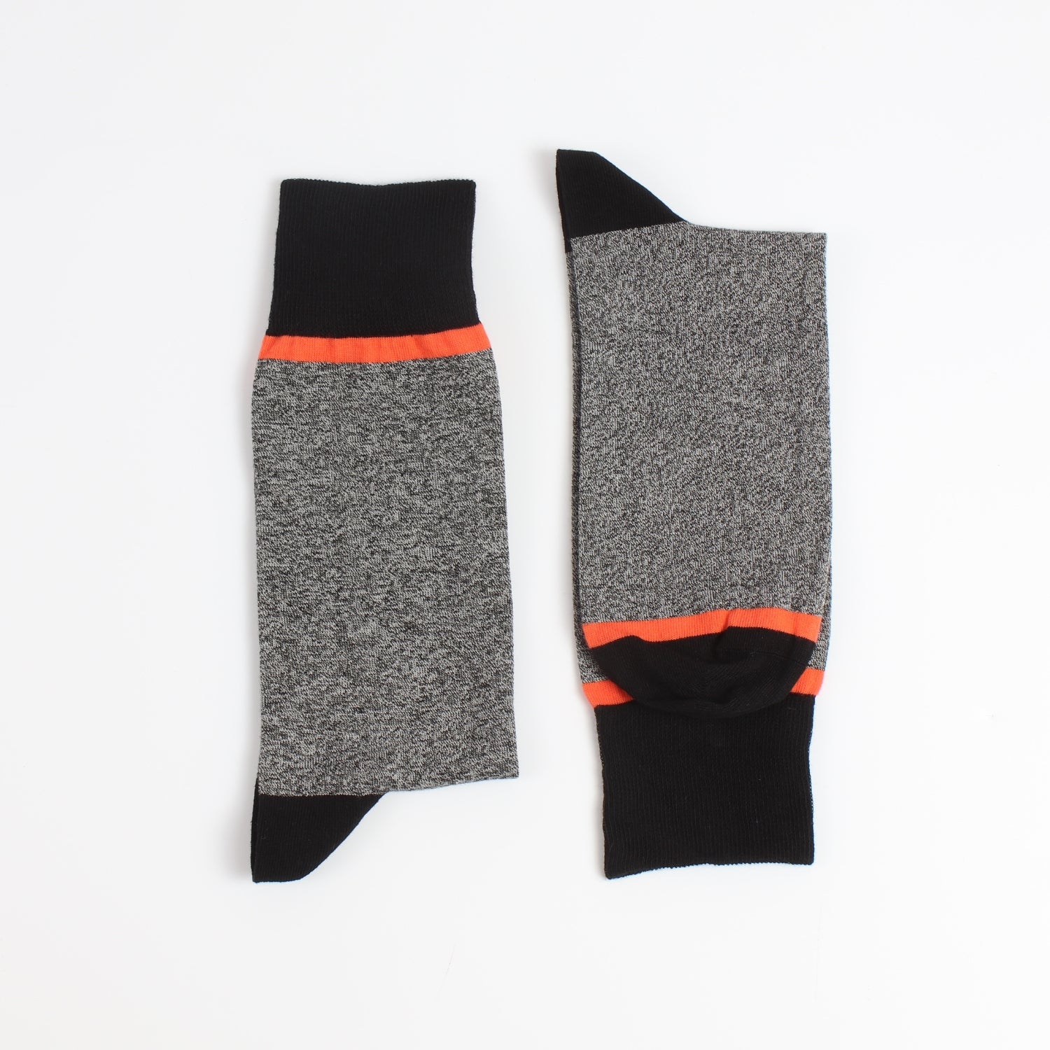 Elevate classic style with these men’s lightweight cotton grey marl socks, featuring a sleek black cuff, heel, and toe. A refined bright and zingy orange line beneath the cuff and just before the toe adds a subtle flash of colour, lending sophistication to an otherwise understated design. Expertly crafted for comfort and breathability, these socks are the perfect finishing touch for any smart ensemble.