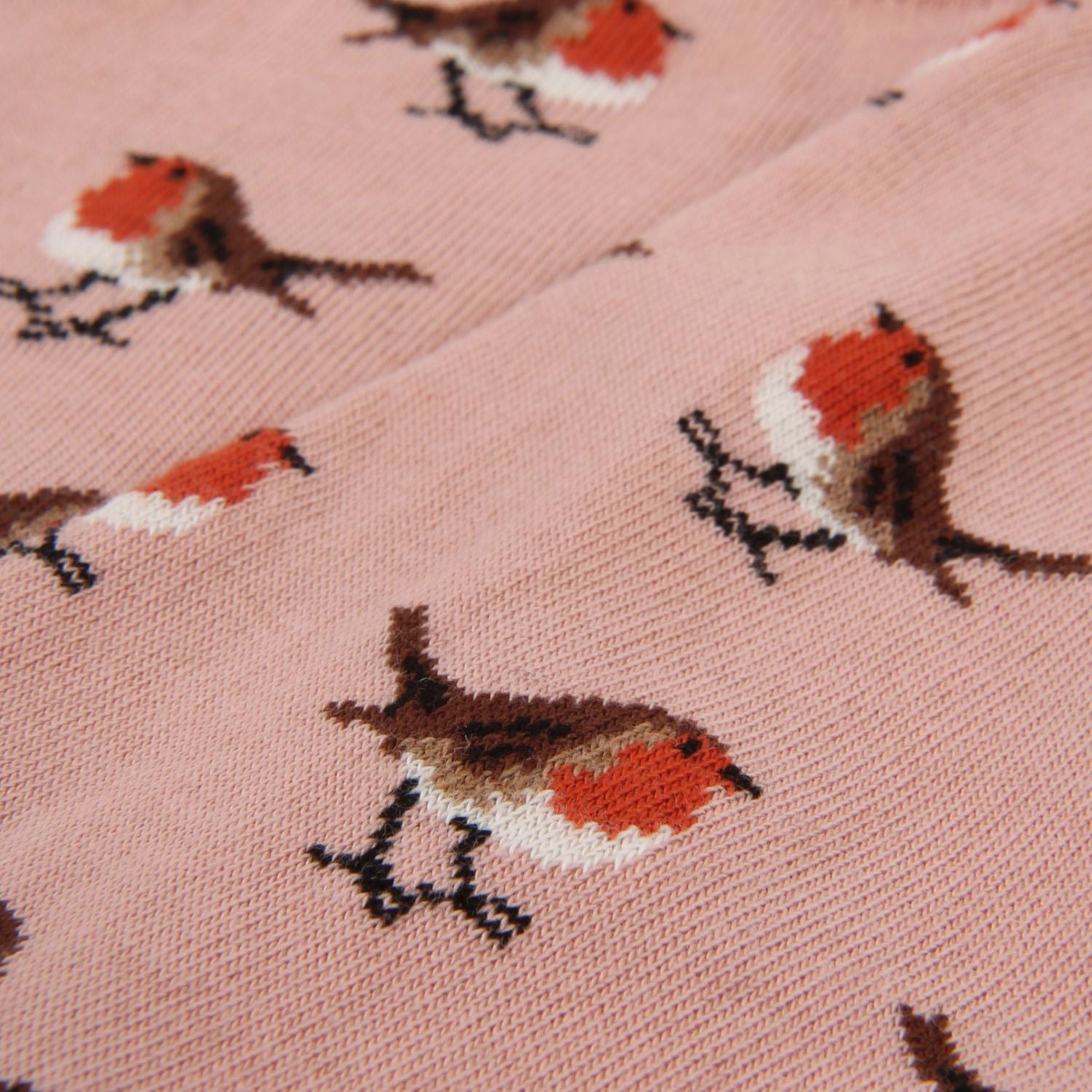 Our Women’s Robin Cotton Socks feature a charming all-over robin motif on a soft dusky pink background, finished with deep burgundy heels and toes. Knitted from a smooth, breathable cotton blend, they offer exceptional comfort with a playful seasonal touch.